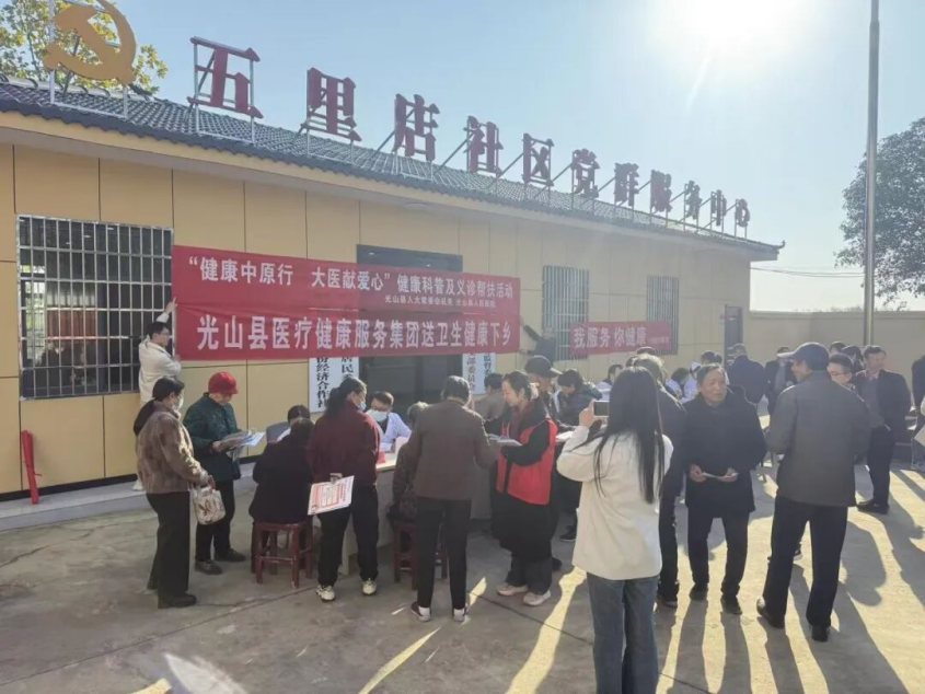 在五里店社区广场的义诊现场,人头攒动,暖意融融。来自光山县人民医院的医疗专家们各司其职,为居民提供免费的血压测量、血糖检测、疾病咨询和诊疗服务。