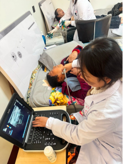 内科承担着老年人健康管理与慢病防治的重任,是他们的“健康守门人”。内一科主任郭仁光耐心细致地为老人们进行问诊,聆听他们关于健康问题的叙述,并结合自己丰富的临床经验,提供了专业的诊疗建议和日常健康指导。内二科医生于小盼和急诊科医生王晓丽也忙碌不停,她们不仅认真解答着老年患者们提出的各种健康疑问,还为他们进行了血糖、血压监测,医学超声科医生和心电图医生对老人进行了详细的床旁检测,帮助老人们及时了解自己的身体状况。