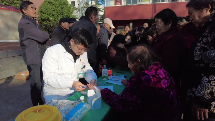 义诊现场,暖意融融,该院医疗团队为居民提供免费的血压血糖测量、心电图、B超、视力、眼底裂隙灯检查等。每位医护人员耐心、细心、贴心地为前来咨询的群众提供服务,对于老年人关心的高血压、糖尿病等慢性疾病,医生们仔细询问病史,结合检查结果给出个性化的治疗建议和饮食指导并提供了疾病预防和保健方面相关知识,提醒大家定期进行体检的重要性。同时,医护人员通过现场答疑向居民们讲解了秋季常见病的预防、合理膳食、科学运动等健康知识。