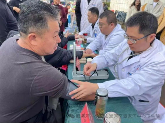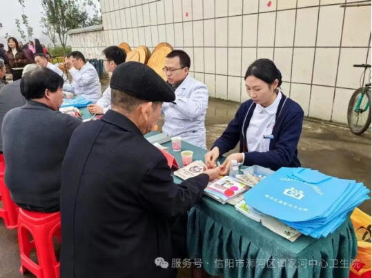 活动现场,浉河区谭家河中心卫生院的义诊服务区前早早排起了长队。由资深医师领衔的医疗团队涵盖中医、全科、内科等多个领域,针对老年人常见健康需求,提供精准多元的医疗服务。医护团队重点为老年群体提供免费血糖、血压检测,耐心记录每一项数据,对指标异常者即时解读结果并给出个性化健康建议,累计服务群众百余人次。中医科医师通过望闻问切了解群众身体状况,细致讲解中医养生知识;全科与内科医师则针对高血压、糖尿病等常见慢性病,详细询问病史与用药情况,提供专业诊疗指导。