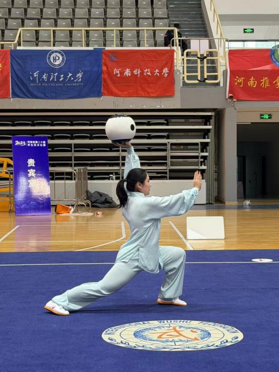 河南医药大学体育学院聂同海、张喆喆两位教师担任教练,率校武术队5名运动员出征。赛场上,我校选手奋勇争先、全力以赴,经过四天激烈比拼,成绩喜人:峻极书院陈静卓荣获女子大学本科甲组太极球第一名;麻醉学院岳芝萱分获女子大学本科甲组初级剑第四名与少林拳第五名;第一临床学院赵珂夺得女子大学本科甲组初级枪第五名。最终,该校代表队在女子大学本科甲组团体总分中位列第七。