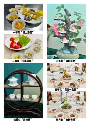 获奖作品巧思蕴匠心,亮点绽芳华,成为赛场之上的独特景致。“鱼跃青荷”绘就清荷映鱼的清雅之态,承载至阴滋养之韵;当归羊肉,温补药膳凝萃阳气,焕发温煦生机。“锦上添花”与“玉凤呈祥”,以龙凤意象诠释一阴一阳、刚柔相济之理,暗合“阴平阳秘,精气乃治”的中医饮食智慧。“清韵蒸糕”“四神茶”温养中焦、固护元气,如沃土育物般调和阴阳。