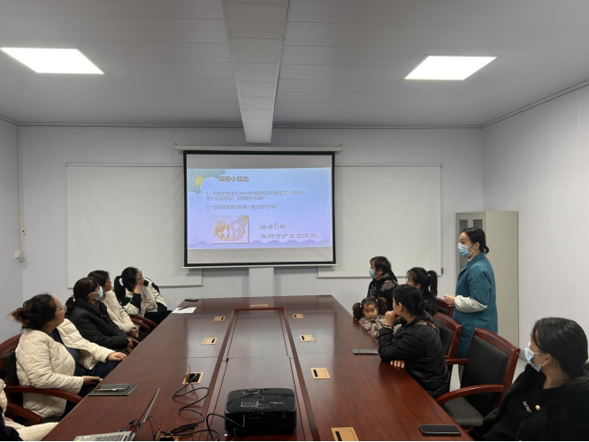该院预防接种门诊主任赛淑珍担任主讲人,通过PPT讲解与互动提问结合的形式,为现场家长带来一堂干货满满的预防接种培训课。互动提问环节,赛淑珍向家长们抛出关键问题:“您的宝宝出生24小时内接种过2针疫苗了,您知道是什么疫苗吗?都预防什么病?”这一提问瞬间引发家长们的热烈讨论,部分家长结合自身经验尝试回答,也有家长坦诚表示“只知道要打,没记清具体种类”。