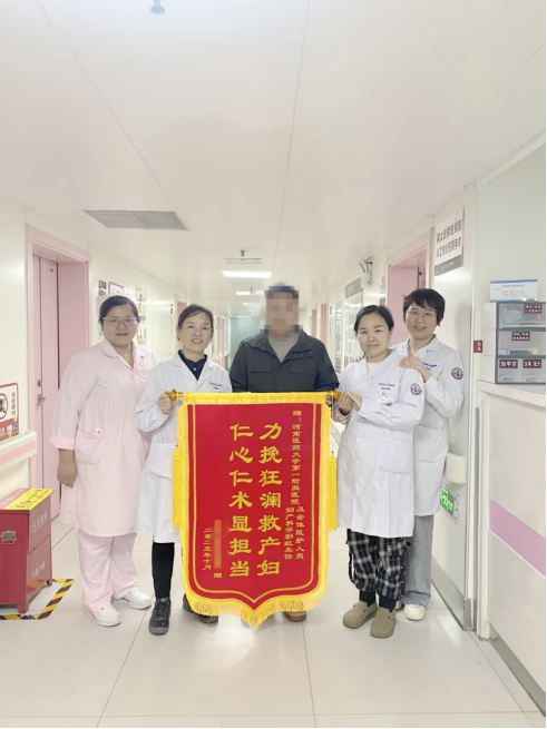 出院后第5天,李女士的丈夫将印有“力挽狂澜救产妇 仁心仁术显担当”和“日夜守护燃希望 精湛医术救生命”的锦旗分别赠送给了产科与重症监护室,真诚感谢医护人员的精心治疗。