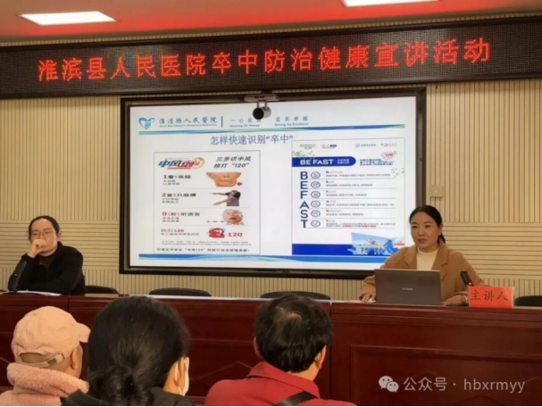 随后,该院神经内科护士长丁霄霄以《猝不及防 时不我待》为题,用形象生动的语言讲解了脑卒中的识别与预防。她现场演示的“中风120”识别口诀简单易记,让大家在轻松互动中掌握救命的技能。