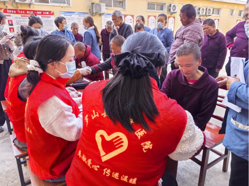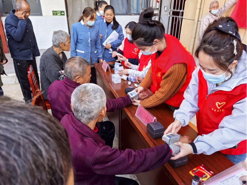 上午8时许,由该院内科医护人员组成的志愿者团队抵达收容场所。志愿者们迅速展开工作,为在场的老年人进行量血压、测血糖等基础医疗检查,并详细询问他们的身体状况和病史,给予专业的健康指导和建议。