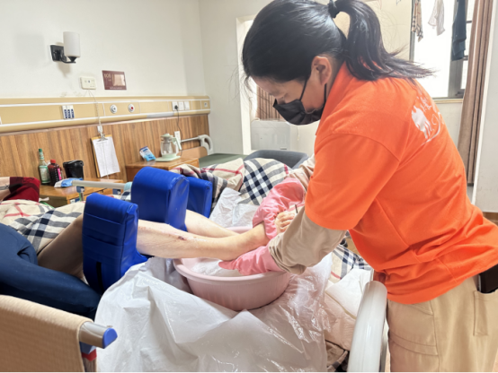 个性化照护:不止“对症”更“对人”。该院针对每位老人的生活习惯、性格特点制定“专属照护方案”:为曾是教师的帕金森病失能老人读报纸、鼓励自主翻页,唤醒其职业记忆;为怕疼抵触换药的糖尿病足患者,操作前先握握老人的手轻声安抚,用轻柔手法减少不适。这种“以人为本”的方案设计,让照护更具“人情味”。