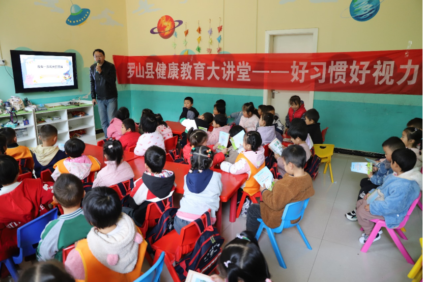 罗山县健康教育大讲堂之好习惯好视力走进庙仙乡金色阳光幼儿园