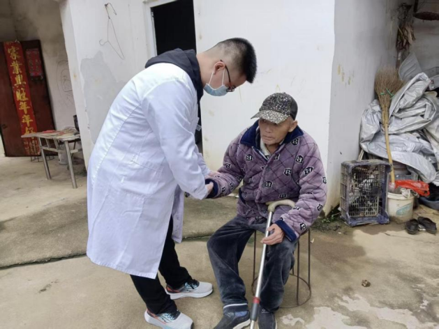 对于帮扶的重点老年人群、失能老人,家医团队进行上门探访,赠送米、油等慰问品,同时完成上门体检与居家护理指导。何老汉因中风后遗症生活不能自理,一直有康复治疗师及护理人员进行义诊随访服务,10月20日,明港镇中心卫生院中医理疗科袁医生来到杨冲村何老汉家中,根据何老汉的情况,进行针对性的康健指导和用药指导,叮嘱日常注意事项。像何老汉这样的老人,辖区医疗机构组织康复治疗师就每位老年人的不同病情,护理人员对家属指导专业的护理方法,让这些特殊的老年人足不出户就能享受到便捷、专业的医疗服务,真正实现了“老有所医”,为他们的晚年健康保驾护航。
