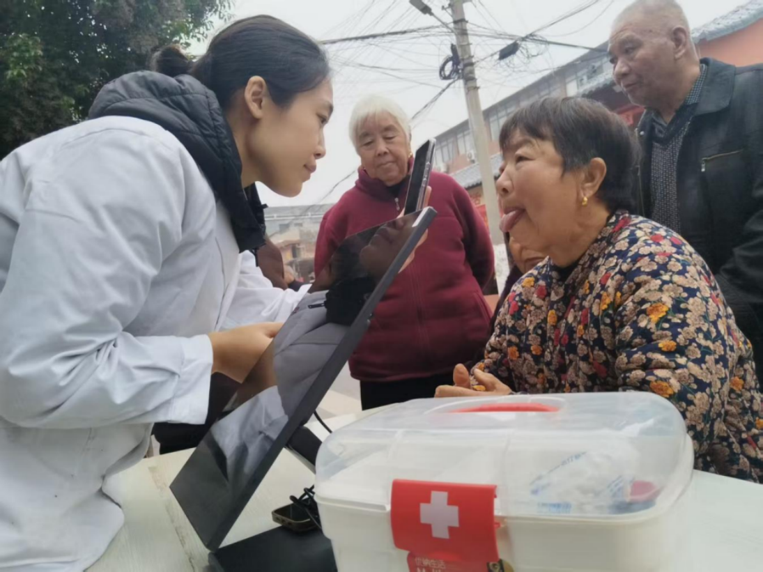 活动中,社区卫生服务中心、村卫生室的健康志愿者为老人们提供了血压测量、心电检查、听诊把脉、体质辨识、临床用药指导、健康知识宣讲、医保政策解读等服务,先进的AI智能检测仪、中医舌诊面诊检测仪吸引着人们争相体验,可视化的疾病预防小知识提醒,让人们对中医药运用有了全新的认知。