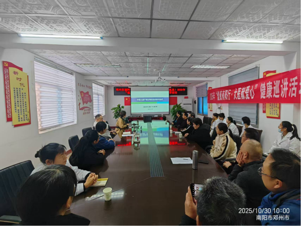 2025-11-3 来源:医药卫生网 - 医药卫生报 浏览:次医药卫生网讯(记者乔晓娜 通讯员崔伟)10月30日上午10时,2025年“健康南阳行·大医献爱心”健康巡讲(湍河站)活动在邓州市湍河社区卫生服务中心(邓州市骨伤医院)举行。邓州市卫生健康委员会宣传科科长付东波莅临指导,中心相关科室工作人员、辖区部分村卫生室医务人员代表齐聚一堂,共赴这场“家门口的健康盛宴”。活动由湍河社区卫生服务中心中心副主任海坤主持,湍河社区卫生服务中心主任致欢迎词。