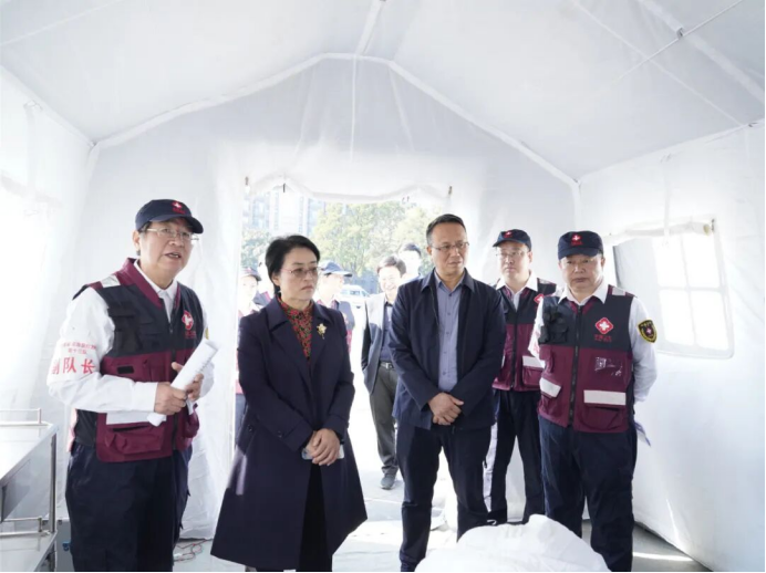 信阳市卫生健康委党组成员、副主任熊林高,该委医疗应急科科长高代清,信阳市中心医院党委书记黄晓赟,党委副书记、院长张克俊等到场观摩指导。演练由信阳市中心医院副院长吴庆勇担任总指挥,医务科负责人邹芳、急诊医学科主任乔俊任副总指挥。