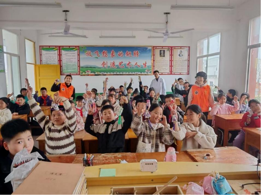 11月10日下午,河南中医药大学博士服务团一行活动首站走进赵岗乡实验学校,一场别开生面的中医药文化进校园活动在此展开。师生们深入教室,用生动易懂的语言为学生讲解中医理论、常见中草药辨识等知识;手把手指导学生制作兼具养生功效与文化内涵的中药香囊,让孩子们在实践中感受中医药魅力;现场教授八段锦等传统养生功法,引导学生养成健康生活习惯。同时,服务团为师生提供体质辨识、健康咨询等服务,将专业医疗关怀送到师生身边。