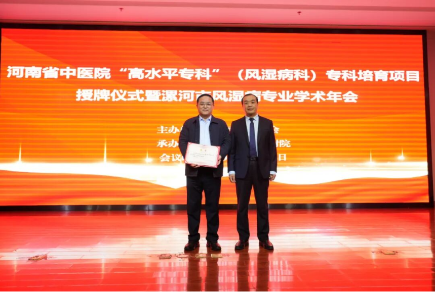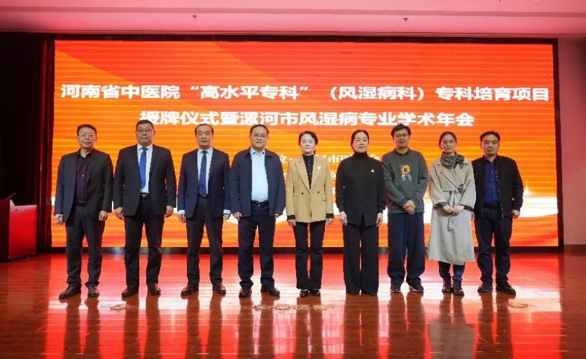河南省中医院风湿科主任孟庆良教授、漯河市卫生健康委副主任于宏、漯河市医学会秘书长花云,漯河医专二附院院长王齐超、副院长吴广良、纪委书记刘国锋等出席会议。