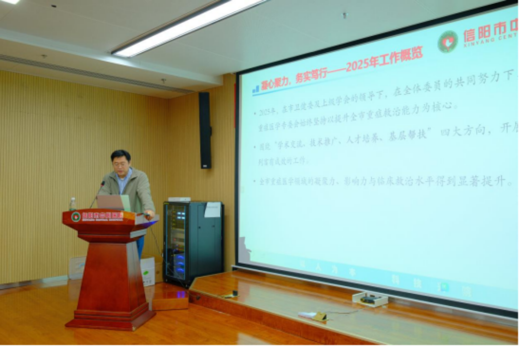 信阳市医学会重症医学分会主任委员芦乙滨主持召开信阳市医学会重症医学会分会全体会议并做信阳市医学会重症医学专委会2025年工作总结及2026年工作计划——《砥砺前行 共筑生命防线》。