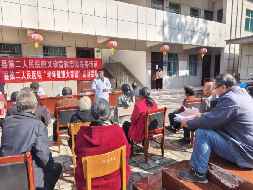 本次活动专为老年群体量身打造“老年健康大家谈”专题巡讲。老年医学科、精神卫生中心专家紧扣农村老年群体多发病特点,围绕《胸痛及脑卒中的识别与防治》《老年人群健康素养》《老年心理健康科普》三大主题,用生动鲜活的案例、通俗易懂的语言,详细讲解日常预防要点、安全用药知识、合理膳食搭配及科学锻炼方法。讲座现场气氛热烈,互动频繁,村民们听得认真、问得积极,收获满满。