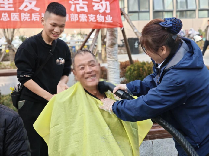 下午两点半,活动准时启动。闻讯而来的患者和家属在后勤保障部工作人员与索克公司志愿者的引导下,有序取号、排队。现场没有喧哗,只有剪刀的“咔嚓”声和推子的“嗡嗡”声此起彼伏,交织成一曲温暖人心的乐章。