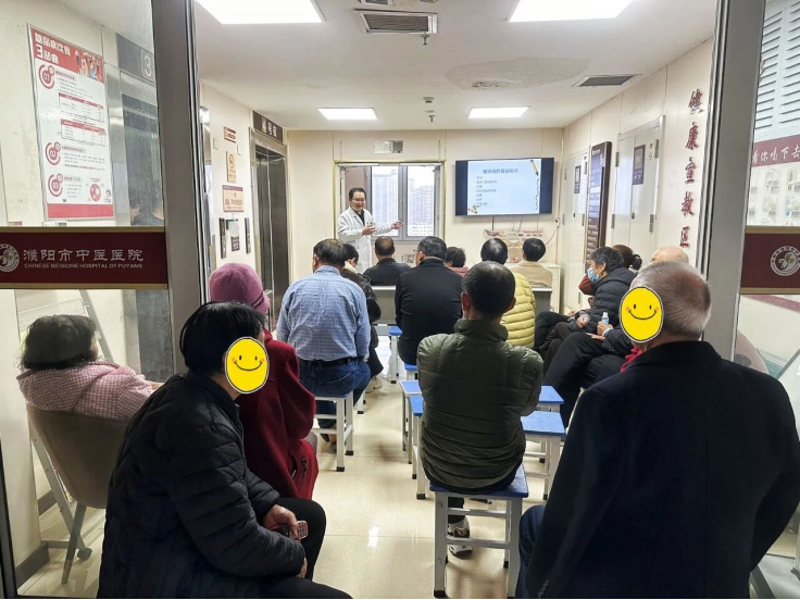 11月14日上午,濮阳市中医医院门诊一楼大厅井然有序,糖尿病老年病科主任医师黄俊臣,副主任医师赵明刚,主治医师卢荣荣、左彦超及护士长郭玉芬等医务人员共同参与活动。现场为患者发放健康宣传手册,提供耳穴压豆、降糖贴等中医特色服务,并开展血糖血压监测服务;同时生动讲解日常饮食搭配、科学运动及胰岛素注射技巧,为糖尿病患者进行个性化病情评估、用药指导和并发症筛查建议,提供便捷高效的医疗服务。