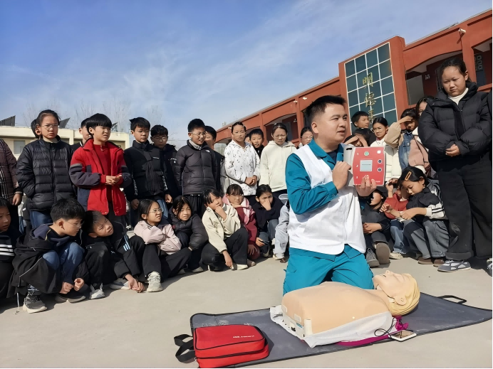 新乡医学院一附院男护士工作委员会此次行动深度融合党建主题与专业急救技能,积极响应中华护理学会男护士工作委员会倡导的“第一目击者现场救护党建公益行动”号召。活动现场,男护士工作委员会的党员们带头示范,将党建活动与专业服务紧密结合。他们不仅演示标准急救操作,还向村民和学校师生普及“现场救护三个一”理念——第一时间识别、第一时间呼救、第一时间施救。