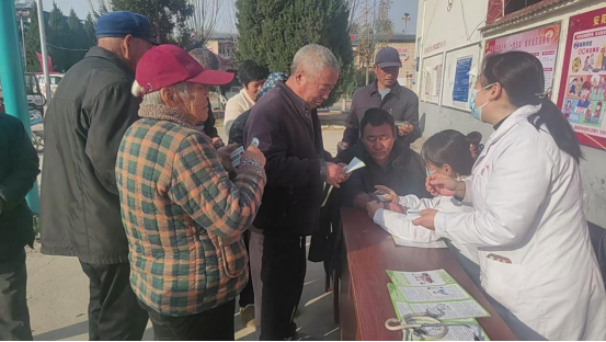 义诊现场,卫生院的医护人员为村民们进行血压测量、血糖监测、中医脉诊等免费诊疗项目,针对农村常见的高血压、糖尿病、关节炎、冠心病等慢性病,向前来问诊的老年人逐一讲解用药规范、饮食禁忌及日常养护要点。同时发放健康宣传手册,并耐心向就诊群众普及疾病预防知识。