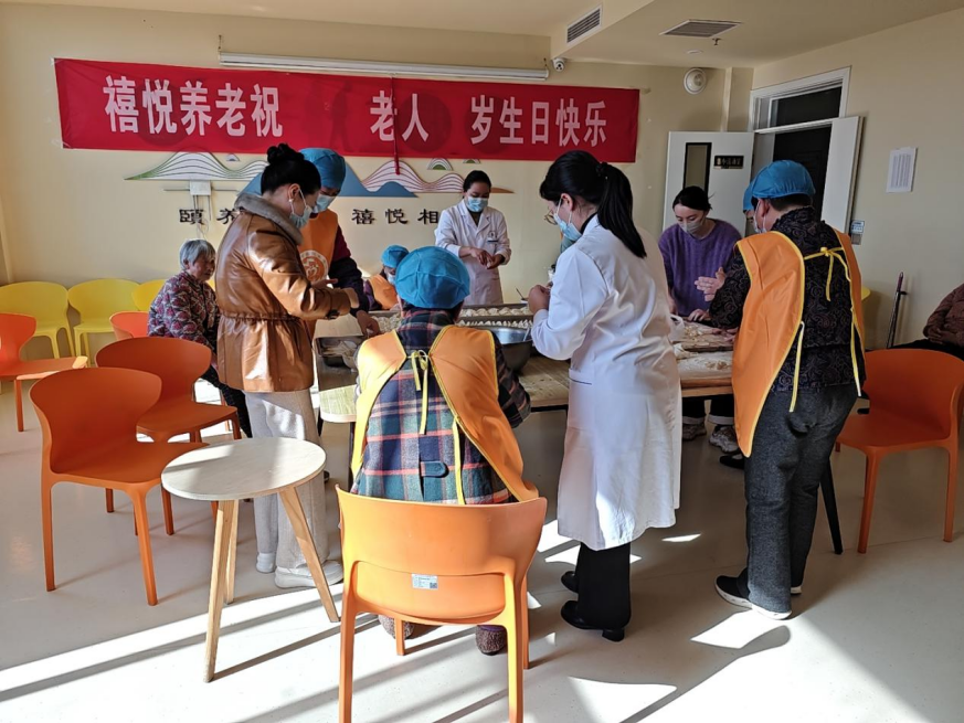 当天,老人们围坐桌前,脸上洋溢着期待的笑容,工作人员穿梭其间,挽袖洗手,一同投入这场充满烟火气的温馨互动。