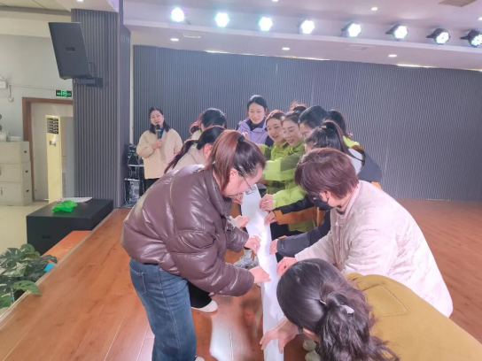 国家二级心理咨询师许雪琴带领团队,精心设计了四个循序渐进的环节:暖场活动破冰启航、“同事同心共绘一棵生命树”表达成长愿景、“极速传递”锤炼沟通与合作能力、“幸福充电站”聚焦终身学习,启迪未来。