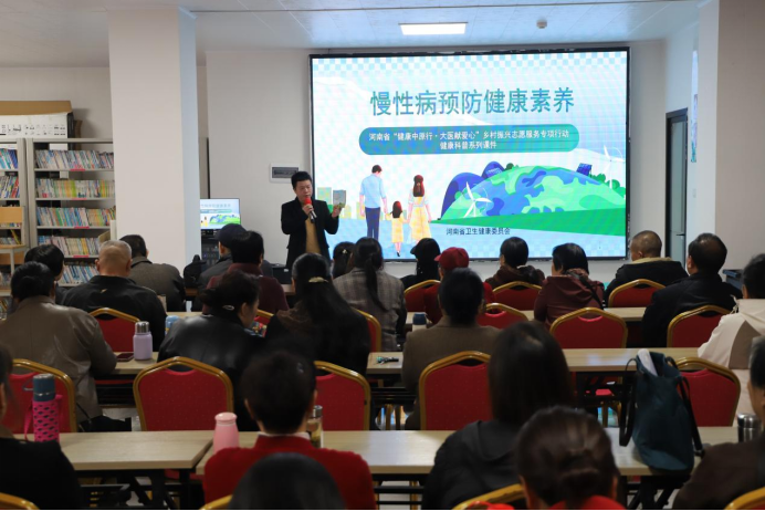 讲座中,罗山县健康教育大讲堂巡讲专家团县级专家葛荣波用通俗语言拆解慢性病防治要点。他先列出高盐高脂饮食、吸烟酗酒、缺乏运动等“高危习惯”,提醒有家族遗传史、肥胖的居民更需警惕;接着教大家识别早期信号:高血压常伴头晕头痛,糖尿病多有“喝得多、尿得多、吃得多还消瘦”的表现,冠心病可能出现胸闷胸痛,出现这些症状要及时就医。