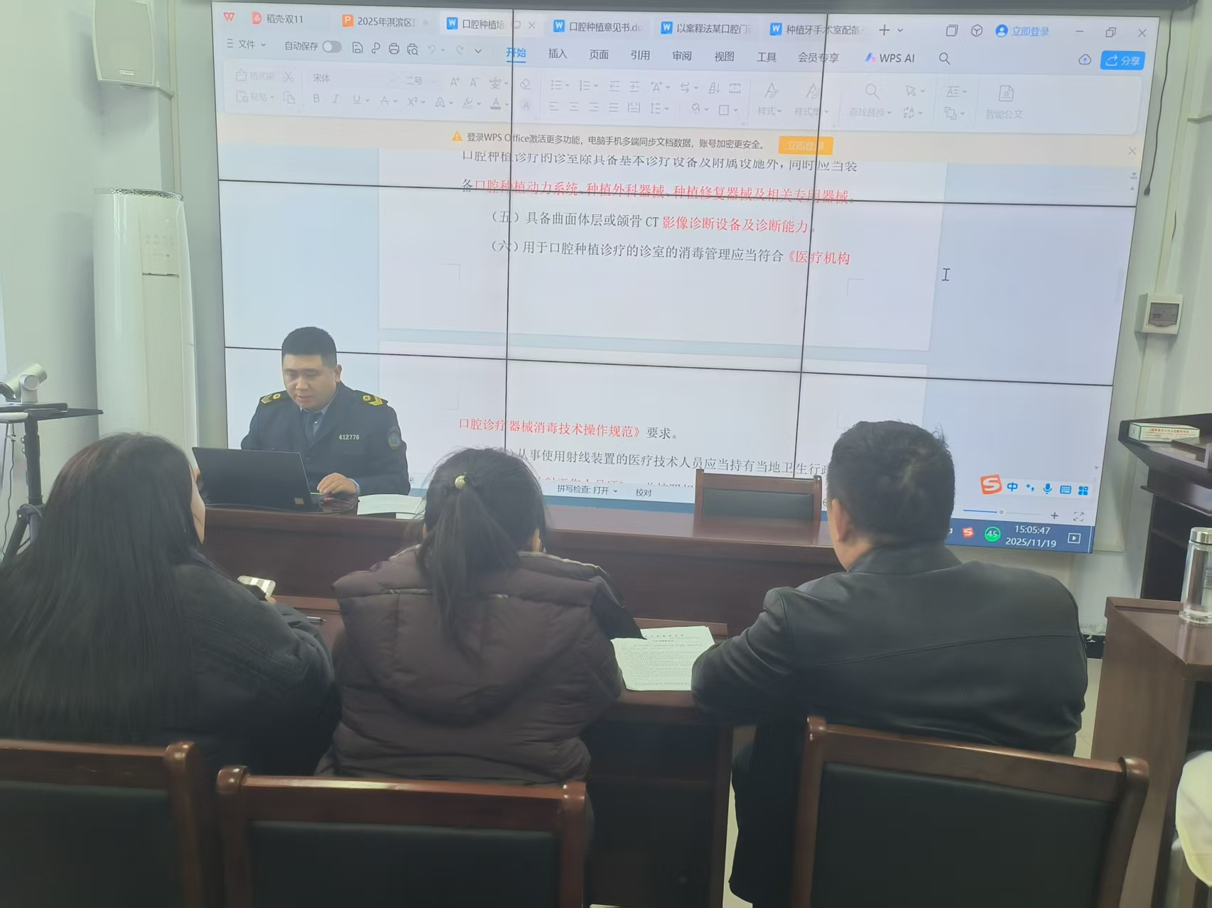 会议由区疾控中心医疗监督科科长李旺主讲,聚焦口腔种植领域依法执业核心要求,结合当前行业监管重点与典型案例,从医疗资质管理、诊疗规范执行、医疗文书书写、医疗质量控制、广告宣传合规等关键环节展开详细解读。培训中,针对口腔种植技术准入、耗材采购使用、收费公示透明化等群众关切问题,逐一明确政策边界与执业标准,强调医疗机构需严格落实主体责任,杜绝虚假宣传、过度医疗、不合理收费等违法违规行为。