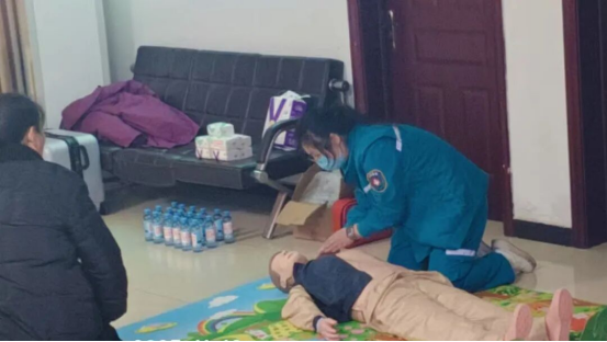 讲座结束后,急诊科医师黄鹂及团队现场演示了心肺复苏(CPR)的操作流程与自动体外除颤器(AED)的使用方法,并邀请居民上台进行模拟操作,手把手指导关键动作要领,提升了居民在突发事件中的自救互救能力。