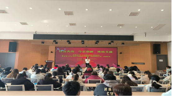 活动伊始,信阳市疾控中心分管主任胡艳上台致辞,表达了对青年大学生身心健康的深切关怀与殷切期望。随后,信阳师范大学校医院院长张景伟作开场宣讲,激发了全场的参与热情。在昂扬的氛围中,象征着健康使命与责任担当的旗帜正式传递至学生代表手中,也将防艾意识与社会责任深深植根于青年心中。