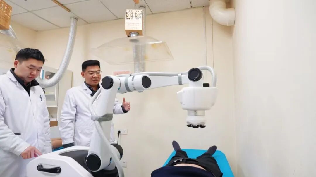 AI(人工智能)机器人的引入,把医护人员从“大量、重复性、高负荷”的体力劳动中解放出来了。廉杰介绍道,“传统中医诊疗依赖大量手工操作,以手持灸为例,医生需要长时间保持固定姿势,手腕、肘部持续用力,极易导致腕关节劳损、腱鞘炎和网球肘。”