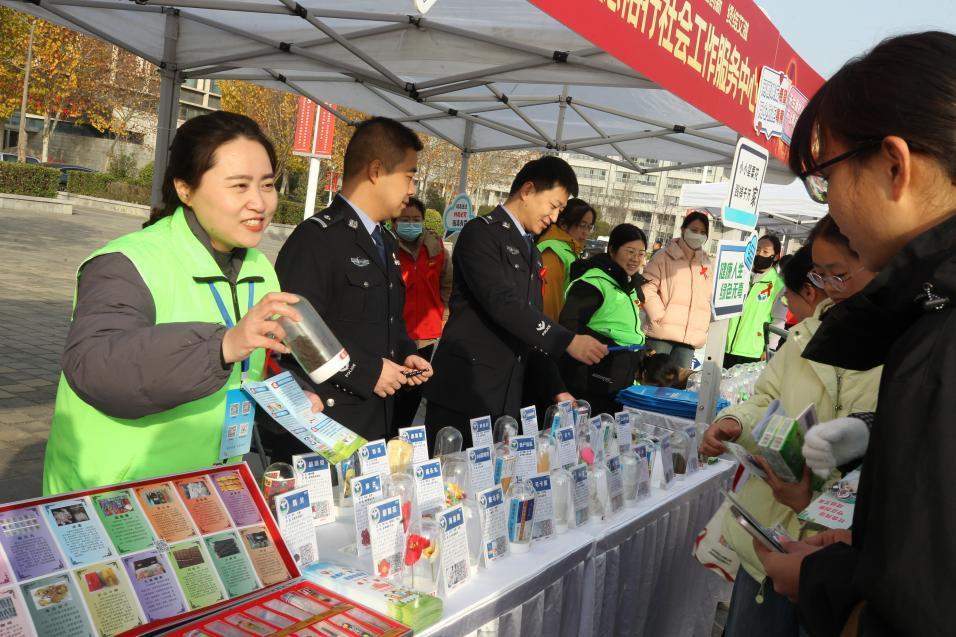 12月1日9时,室内活动以“艾滋病防治优秀文艺节目展演暨百千万志愿者高校艾防宣讲活动颁奖与授旗仪式”为主线,于校内报告厅精彩上演,活动通过朗诵、三句半、民舞、“有奖竞答”、科普小品、青年学生防艾知识科普讲座等文艺形式,生动传递防艾知识,并通过医药卫生报、顶端新闻等媒体进行全程直播。与此同时,室外活动各参与单位及高校展台上有多种宣传小礼品供大家领取,来自医疗卫生机构的工作人员为同学们提供专业咨询,普及政策法规、防护措施、检测渠道等防艾知识,提升青少年群体的防艾知识水平和自我保护意识。