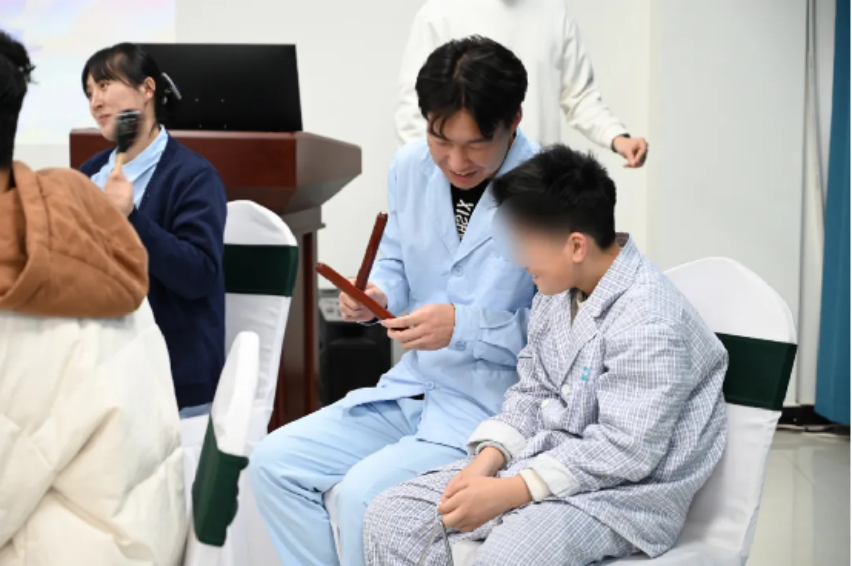 活动现场特别设计了“情绪宣泄”“协作共鸣”“静心冥想”三大环节:患者通过自由击鼓将压力转化为节奏;在节奏传递中感受支持与信任;最后以统一和谐的节拍体验集体共鸣的力量。“当所有人的节奏慢慢同步,我感觉自己的心跳也和大家连在了一起!”一位参与活动的小患者感慨道。