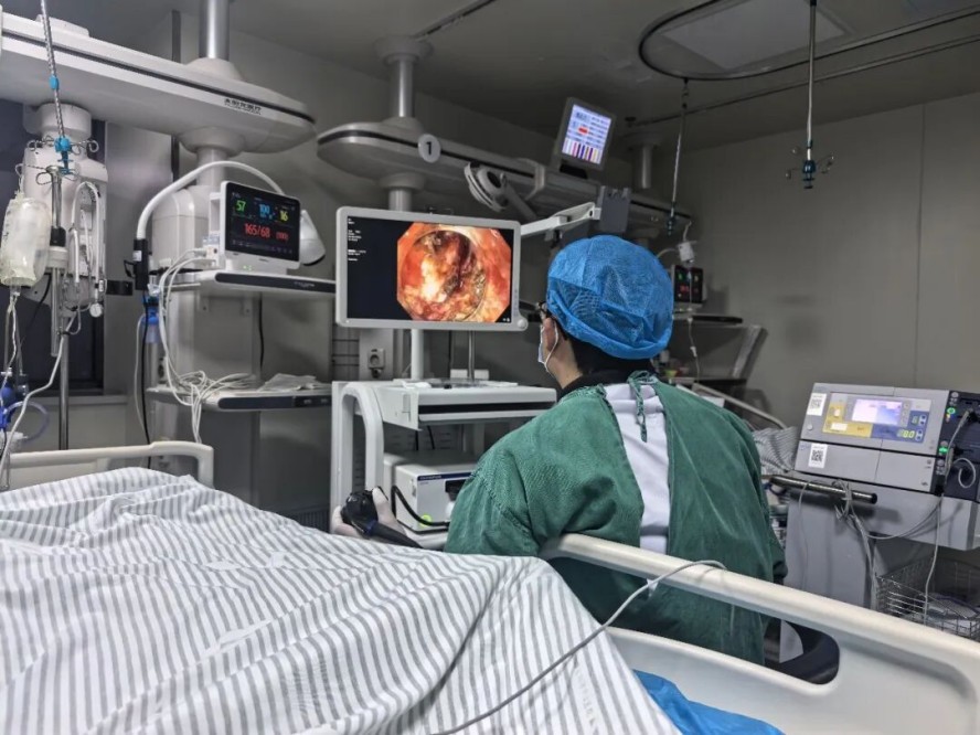 急诊重症监护病区,是该院救治危重症患者的前沿阵地,承载着生命的最后托付。在这里,病情瞬息万变,救治争分夺秒。面对一位辗转多家医院、救治希望渺茫复杂危重患者,信阳市中心医院EICU团队没有丝毫迟疑。多学科协作锁定“元凶”,主任孙杨、副主任崔璨带领团队快速评估、果断决策,当日CT检查提示胃底,脾脏异常密度影,立即请介入科主任唐启耀、消化科主任王玉军紧急会诊,怀疑消化道溃疡穿孔。次日郑大一附院远程会诊制定方案后,由消化科医生高翔床旁胃镜探查,发现胃穿孔伴大量脓液涌出,肿瘤不除外。病情凶险复杂,EICU立即组织多学科会诊后,由肿瘤外科主任李国强为患者进行手术治疗。