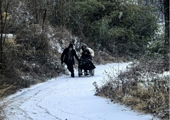 1月19日,洛阳市孟津区发布暴雪黄色预警。凌晨5时许,孟津人民医院急诊科接到西部山区某村群众的急诊求助。彼时,雨雪过后的山路湿滑难行,加之道路狭窄,救护车无法直达患者家中。