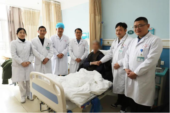 在与患者家属沟通并征得同意后,一场多学科协作的“生命接力赛”正式拉开帷幕。患者被送入介入手术室,麻醉科邢文予主任团队凭借丰富的危重患者麻醉经验,为手术保驾护航,精细调控血压、心率。随后,敖祖松通过微创血管介入,成功将堵塞大脑中动脉的血栓取出,实现了脑血管的完美再通。术后,患者被直接转入重症医学科(ICU),邓开红团队立即为患者施行了胸腔积液穿刺引流,迅速缓解积液对心肺的压迫;同时,任剑军团队精准施救,通过利尿、强心等治疗手段,有效纠正心力衰竭。待患者心功能及整体情况稳定后,顺利转入老年病科,由范克政团队负责后续治疗和综合管理。