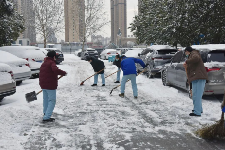 1月20日一早,天刚蒙蒙亮,中牟县人民医院的职工们就自发行动起来,纷纷拿起扫帚、铁锹等工具,在院区内各个道路开展除雪工作。大家配合得默契,有的弯腰清扫零散积雪,有的挥锹铲除路面厚雪,有的合力将堆起的雪清运到路边,动作麻利又高效。