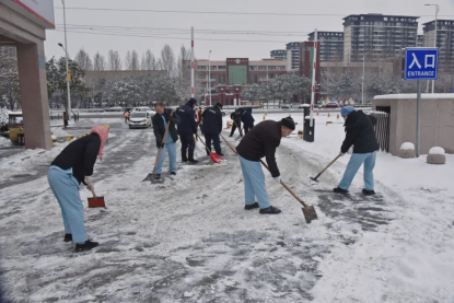 与此同时,负责医院周边路段保洁的环卫工人也赶到现场,和医院职工并肩作战。凛冽的寒风中,大家顾不上搓搓冻红的双手,只顾着加快进度,争取尽早把主干道、出入口的积雪清理干净。