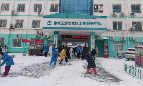 漯河市郾城区沙北社区卫生服务中心开展“以雪为令、为民解忧”扫雪除冰行动