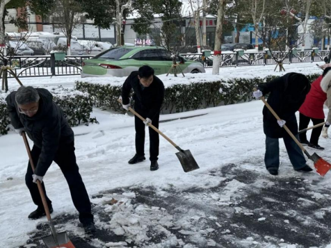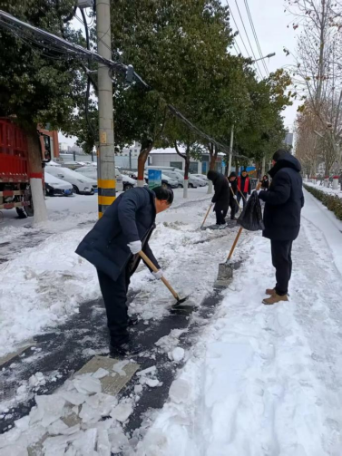 虽然寒风凛冽,但大家干劲十足、不畏严寒,分工有序、积极配合,现场一派热火朝天的景象。在干部职工近三个小时的努力下,办公楼房前屋后、责任路主干道等地段的积雪得到了清扫。