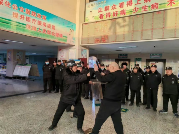 日前,温县人民医院在院内开展一场最小应急单元实战演练,旨在检验和强化安保队伍快速反应、协同处置突发事件的能力,提升医院安全保卫和应急处突能力,从而确保医院岁末年初医疗秩序平稳与医患安全。