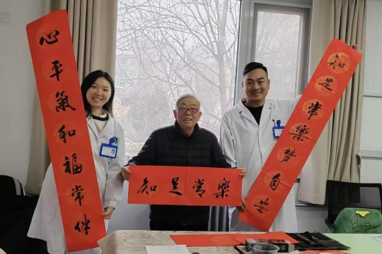 值此新春佳节来临之际,黄河路基层实践基地邀请社区知名书法家,在基地现场书写春联。活动现场,笔墨飘香,书法家们挥毫泼墨,将新春的祝福与对基层医护人员的敬意融入一副副春联、一个个福字中,并将其全部赠予基层实践基地的医护工作人员以及参与活动的住培医师。
