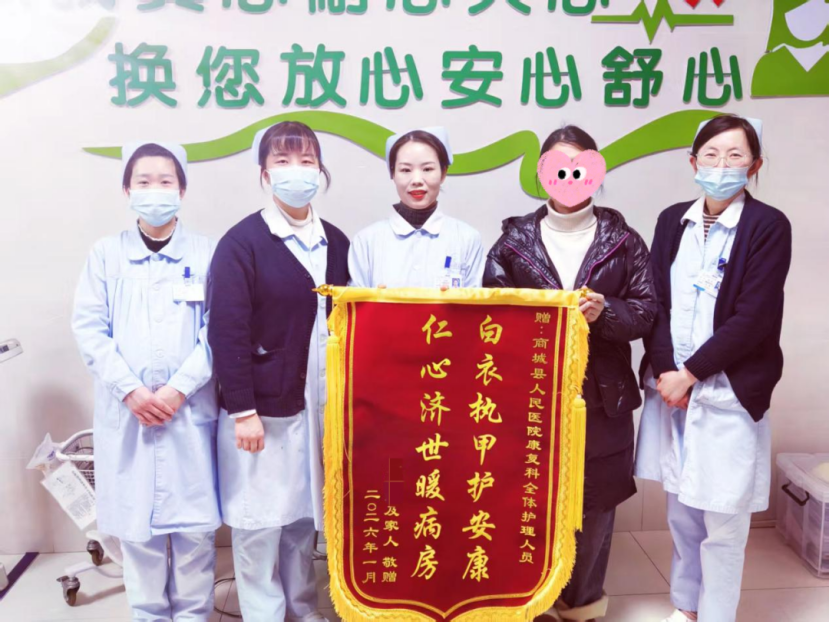 2026-1-31 来源:医药卫生网 - 医药卫生报 浏览:次医药卫生网讯(记者王明杰 通讯员徐坤冉 杨翔)近日,一位曾因延髓梗死致四肢瘫痪、失语的重症患者的家属,将两面锦旗送至商城县人民医院康复医学科,以感谢医护人员对其父亲住院康复期间的精心治疗和优质护理。这份沉甸甸的谢意见证了一段医患同心的温暖康复故事。