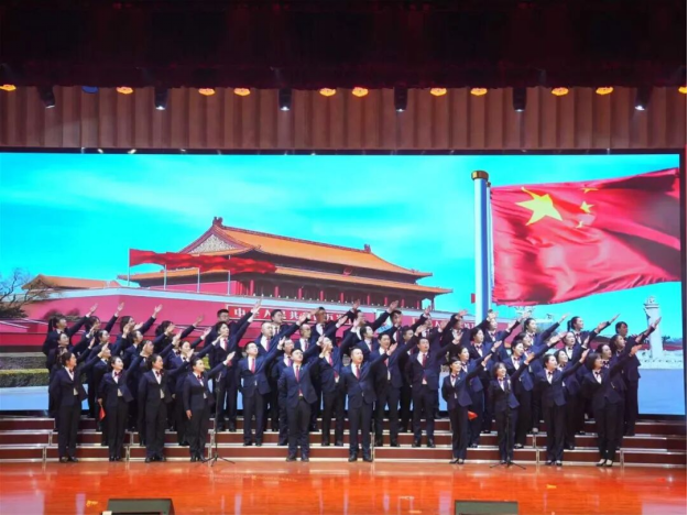 最后,机关第一、二、三党总支合唱《时代号子》《歌唱祖国》压轴登场,五十余名党员代表用歌声铭刻信仰,以奋斗致敬时代,为晚会画上圆满句号。