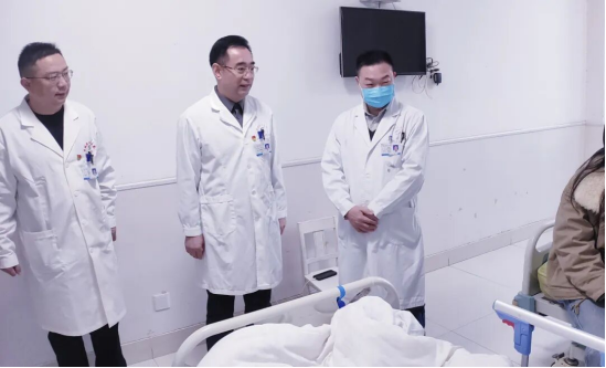 “大家辛苦了!除夕坚守一线,感谢你们的奉献与担当!”每到一处,王卫一行与医务人员亲切交谈,详细询问节日期间医疗工作安排、患者收治情况及后勤保障措施,叮嘱大家既要全力保障医疗安全,也要注意劳逸结合。王卫高度赞扬医务人员“舍小家、为大家”的职业精神,勉励大家继续以高度的责任感和精湛的技术守护人民群众生命健康。院班子成员一行还走进病房看望住院患者及家属。“给您拜年了!祝您早日康复!”王卫来到病床前,为患者送上新春祝福,详细询问治疗进展与生活需求,并安慰患者安心养病,医院会全力提供优质诊疗服务。