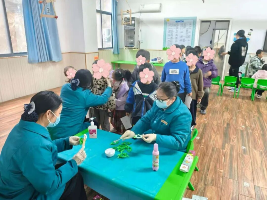 活动前期,中心与幼儿园紧密对接,提前告知家长涂氟注意事项、做好幼儿口腔状况摸排,确保活动安全、有序、高效开展。现场,医护人员化身温柔的“护牙卫士”,用童趣化语言安抚孩子们的小紧张,把涂氟比作“给牙齿做草莓泡泡浴”,让孩子们在轻松愉快的氛围中配合检查与涂氟。