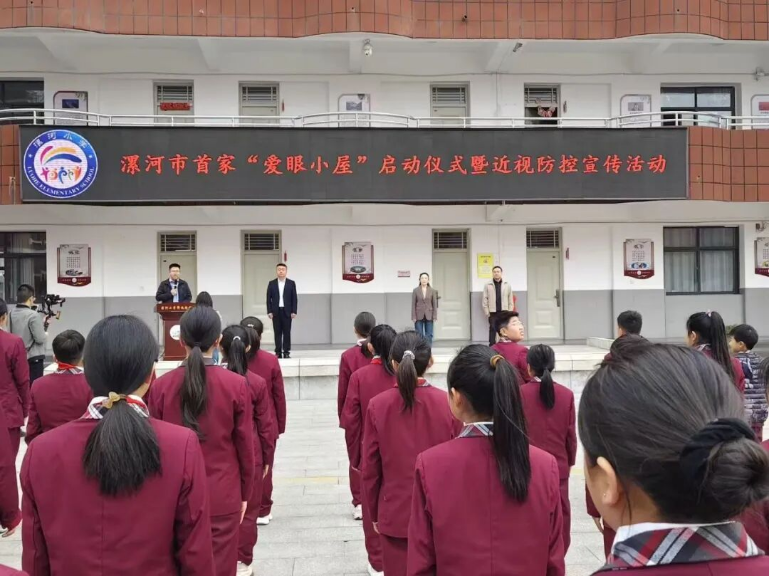 在热烈的掌声中,出席仪式的领导共同为“爱眼小屋”揭牌,牌匾正式亮相,标志着漯河市学校近视防控工作迈入专业化、规范化发展新阶段。