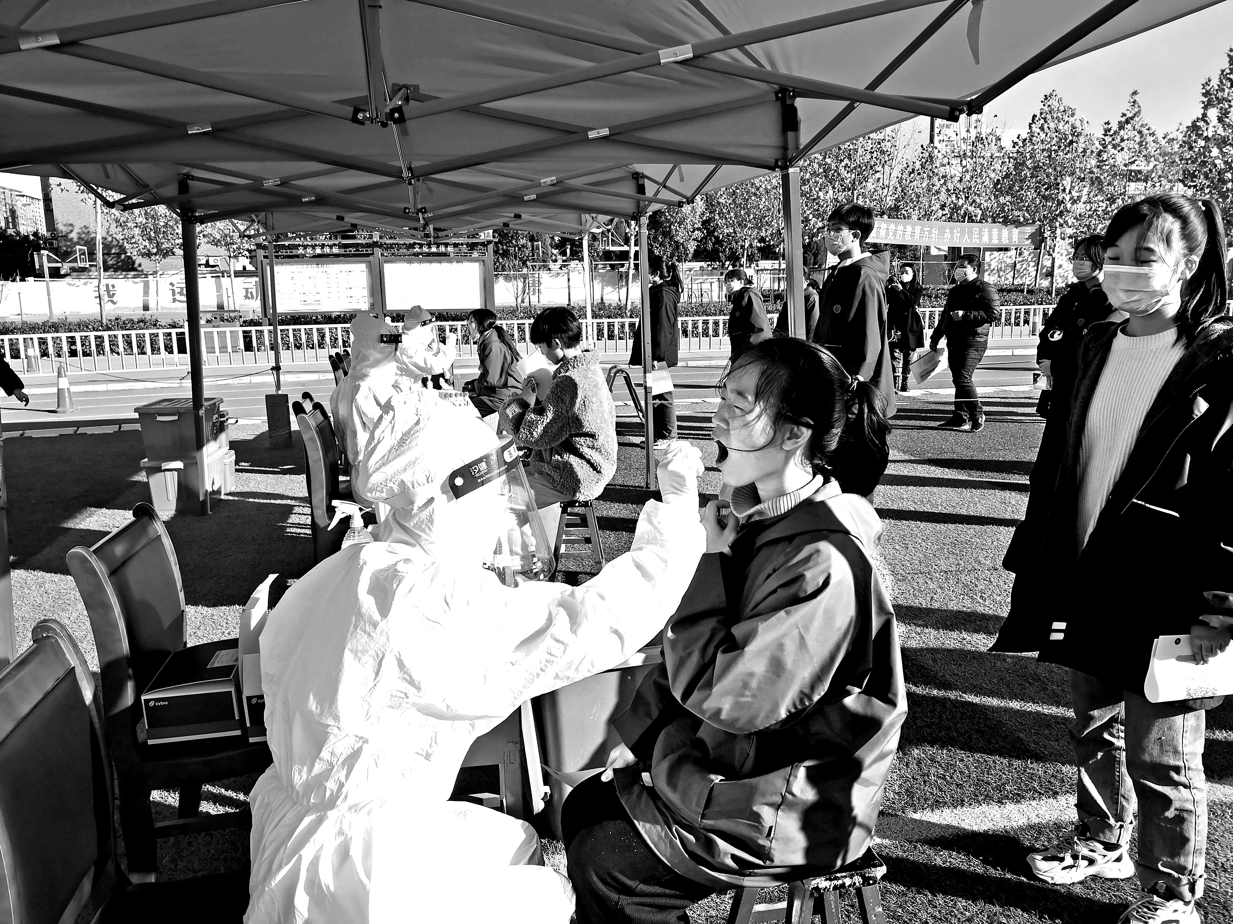 12月2日下午,孟州市中医院医务人员在进行核酸检测实战演练。当天,由孟州市卫生健康委、孟州市教育体育局协调组织,孟州市中医院安排医务人员在河雍中学操场对河雍辖区幼儿园、小学、初中及高中在校学生进行核酸抽样检测实战演练。现场设置采样区、信息采集区、等候区、缓冲区、临时隔离区,共设置3个采样台。此次实战演练全部采用信息化手段,共采集样本1230人。各乡镇卫生院、市直学校及各乡镇中心学校有关负责人也参加了现场观摩培训,为下一步开展全市师生核酸抽样检测做好充分准备。