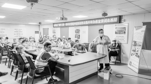 7月20日,郑州市遭遇极端强降雨,李勇带领班子成员迅速启动防汛应急预案,提前采取应对措施,坚守防汛一线;带领医院男职工在雨中填沙筑堤,并反复查看院内汛情,确保患者和职工的生命财产安全。