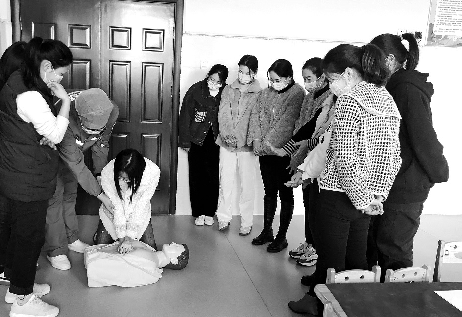 日前,息县人民医院医务人员在息县第三幼儿园演示海姆立克急救法。应息县第三幼儿园的邀请,该院急诊医学科公众急救技能培训班成员利用中午休息时间开展冬季传染病预防暨应急救护知识培训。此次培训包括“心肺复苏技能、海姆立克急救法、小儿意外伤害”等急救知识。为了进一步提高广大群众的急救能力,该院依托急诊医学科举办公众急救技能培训班,至今已举办6期,共有70多名群众受益。 王明杰 唐 楠 杨森梅/摄